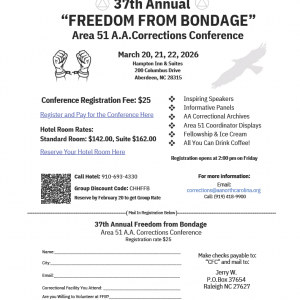 37th Freedom From Bondage Annual Conference about bringing AA to those inside the walls ... 20 - 22 Mar
