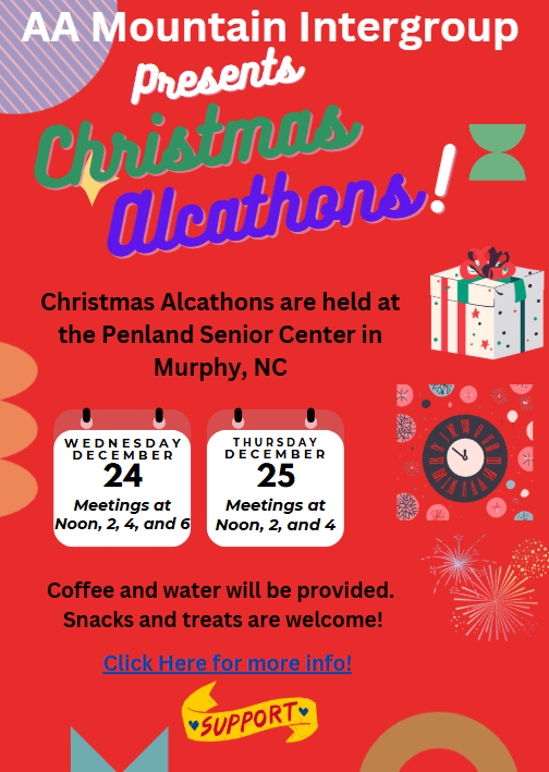 Penland Senior center, Murphy NC – Meetings Christmas Eve Noon, 2, 4, and 6 and Christmas Day at Noon, 2, and 4
